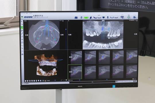 歯科用CTの画像をもとに、インプラントを埋め込む角度や深さなどを、3Dで詳細にシミュレーションできます。